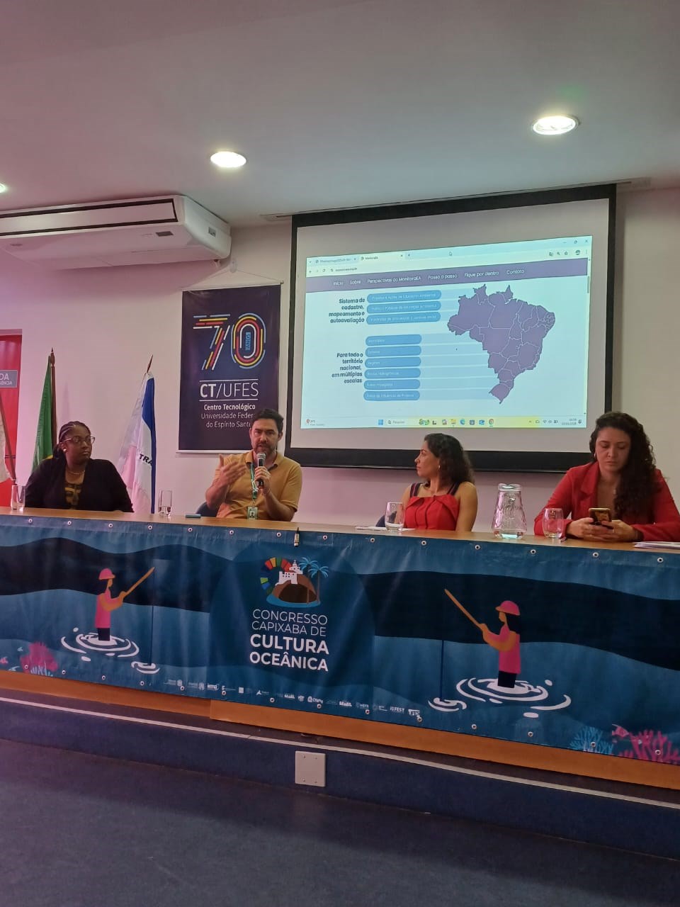 O momento foi dedicado à apresentação das políticas públicas no Espírito Santo que perpassam a cultura oceânica e o trabalho de educação ambiental realizado dentro das Unidades de Conservação do Estado, além de pontuar a atuação dos Centros de Educação Ambiental que promovem a cultura oceânica.
