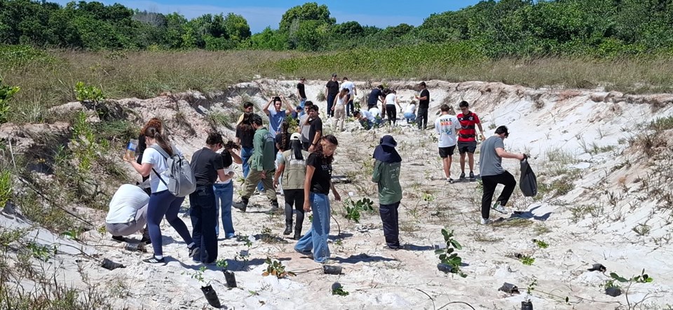A atividade contou com a participação de mais de 40 alunos calouros dos cursos de Administração, Economia, Direito e Contabilidade, que auxiliaram na ação de restauração ecológica. A iniciativa contribui para a recomposição da vegetação nativa e para a proteção dos ecossistemas característicos da restinga. Foram plantadas espécies como aroeira, clusia, pitangueira e ingá-da-praia