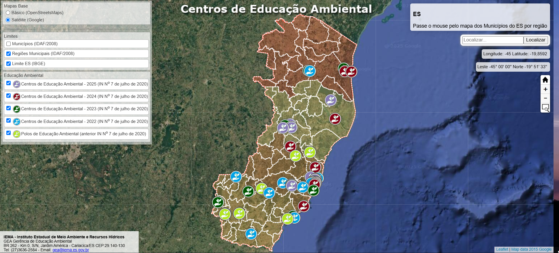 Veja os Centros de Educação Ambiental no Mapa Georreferenciado: