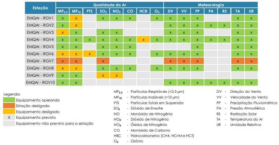 Para maiores informações acesse o Relatório a Anual de Qualidade do Ar.