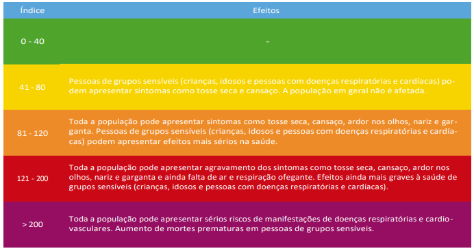 Quadro 2: Relação entre valor do IQAr e possíveis efeitos à saúde